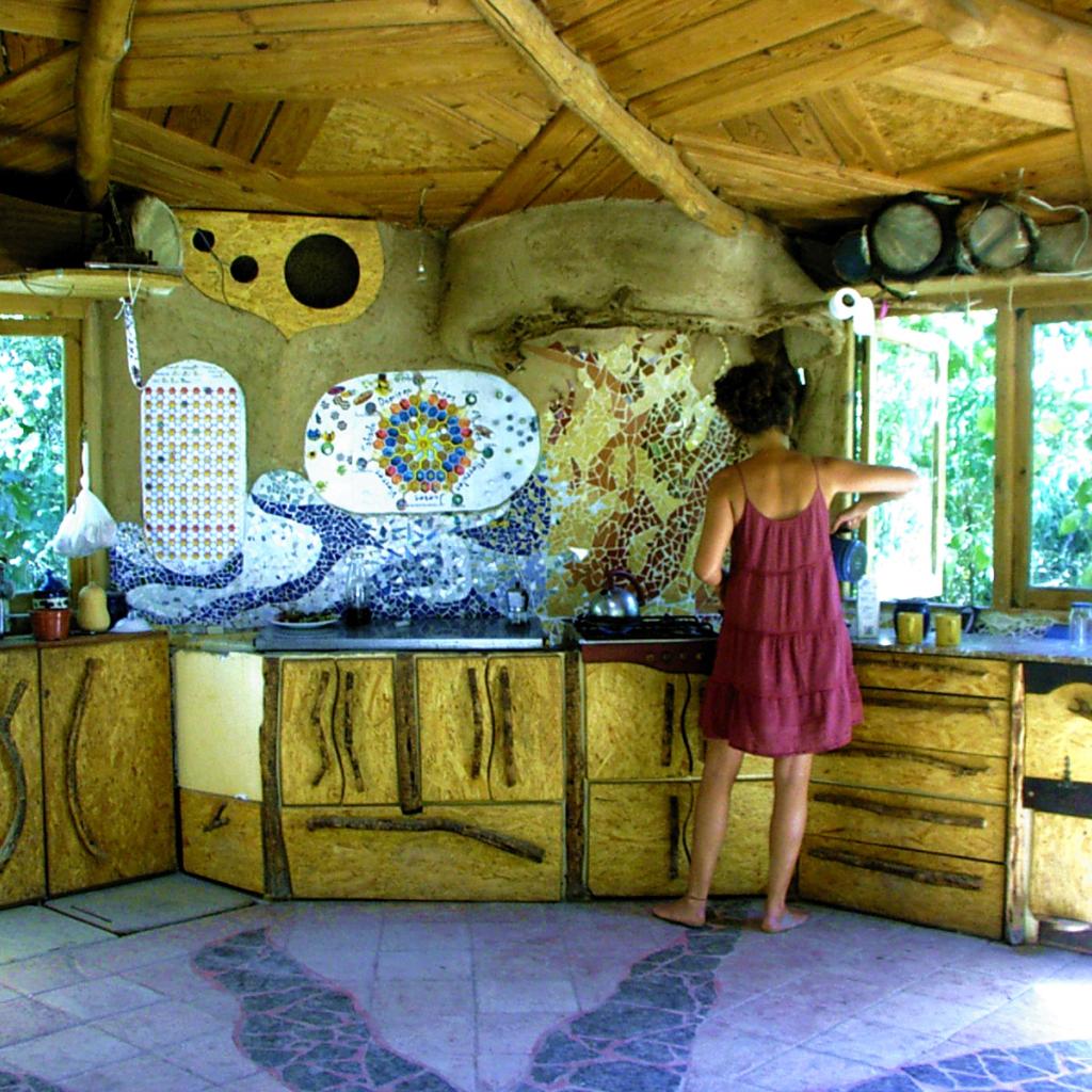 Including a natural fridge, a bread oven (which transforms into a stove), a fireplace, a radiant wall and a sound system running on the 12 V of the solar system.
