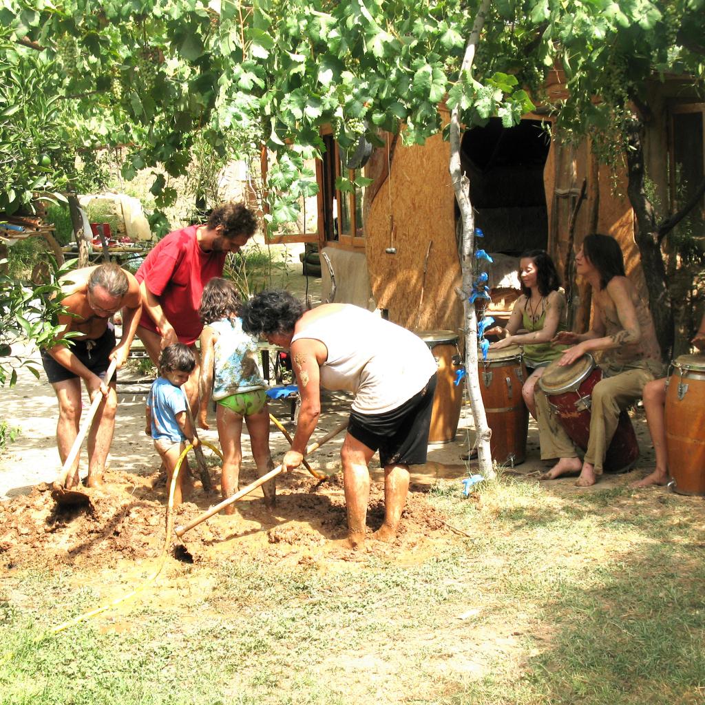 The valley is an oasis in the midst of spectacular clay formations, with a stream surrounded by wilderness, fruit trees, a pleasant micro-climate, and many artistic buildings filled with the Spirit of life in harmony with nature. Our fertile valley feels like a home in the lap of Mother Nature, with the firmament of stars as a roof. Protected from the wind, the heat, and intrusions it is a place for a group of people to find comfort. Space where the connection between people and nature can happen easily. Embedded in this paradise, little artistic spaces are created, which provide intimacy to its residents and support individuality with their unique character. Everything in this valley is within proximity, and yet, the valley offers many hidden spots and places of different ambiance, which allows the group and each participant to freely oscillate between community and privacy.