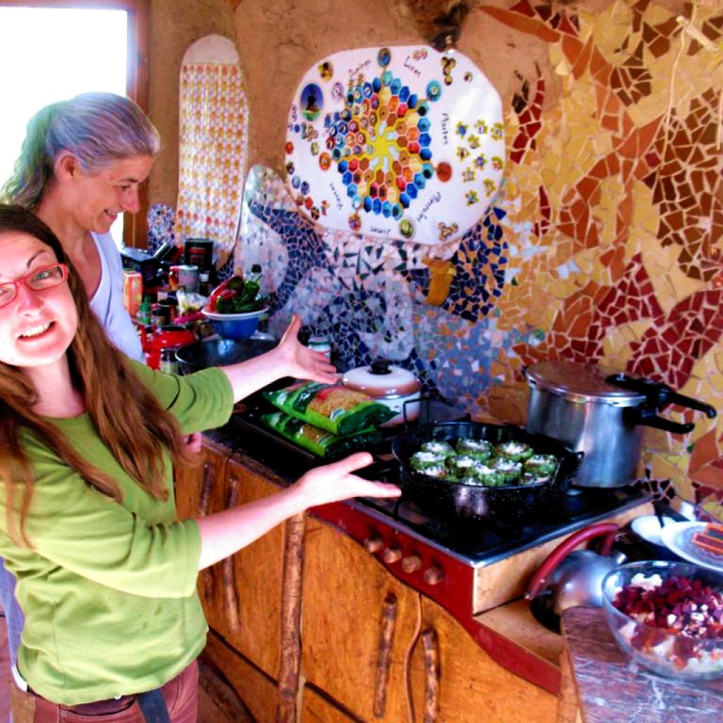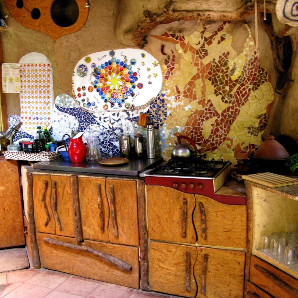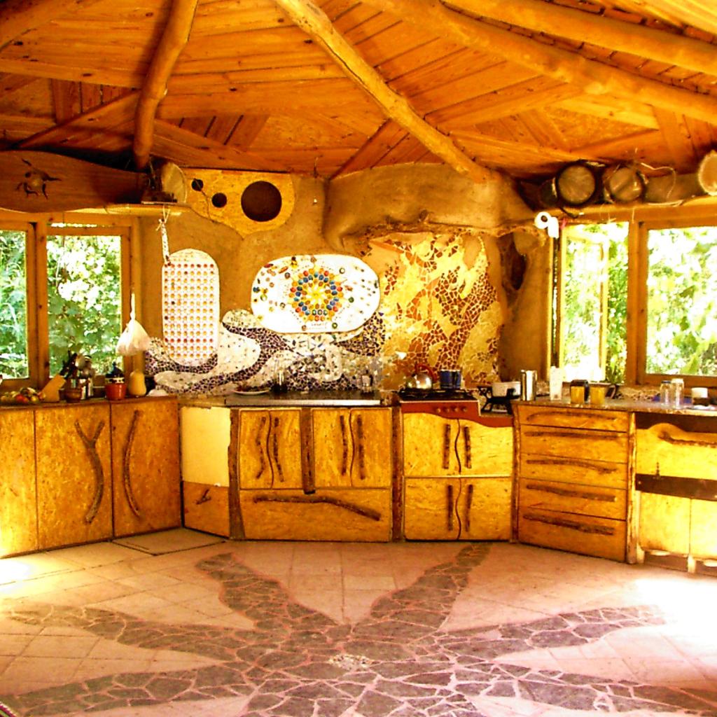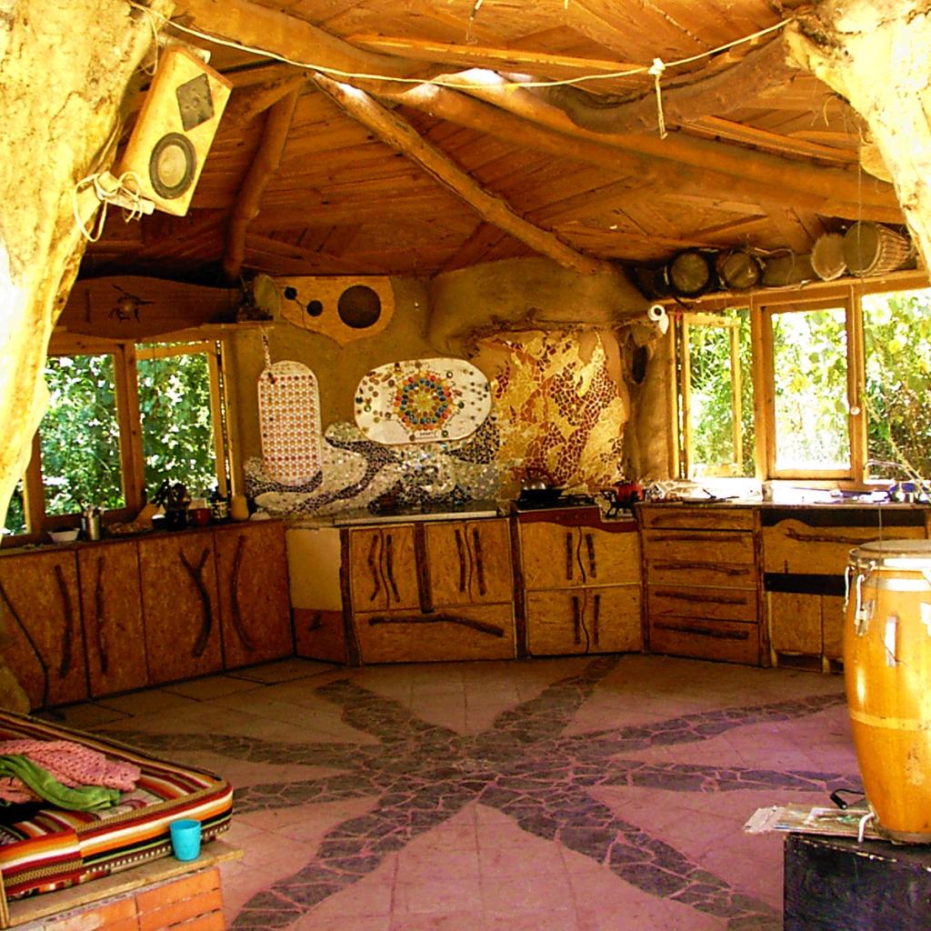 Including a natural fridge, a bread oven (which transforms into a stove), a fireplace, a radiant wall and a sound system running on the 12 V of the solar system.