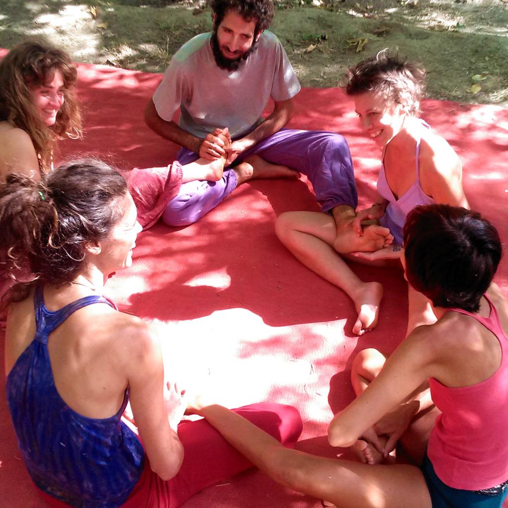 Open air group space under a walnut tree