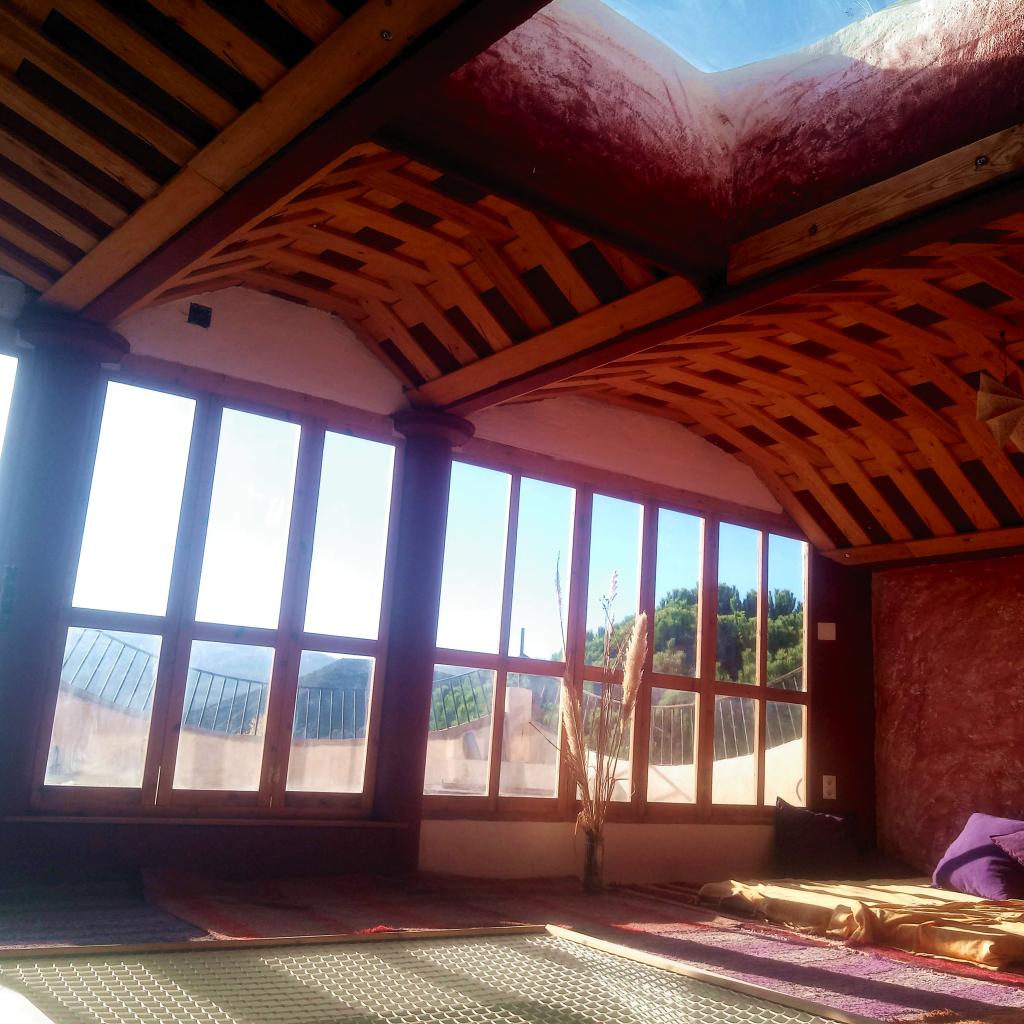 Este no es un lugar de completo silencio ni privacidad: incluso las habitaciones privadas permanecen conectadas al flujo vibrante del patio, que también acoge música, danza y proyecciones. El cuidado del nivel de sonido asegura la armonía. Los gruesos muros históricos aportan confort bioclimático natural, frescor en verano y calor en invierno, apoyados por un sistema de calefacción central a leña que mantiene los espacios comunes acogedores y vivos.